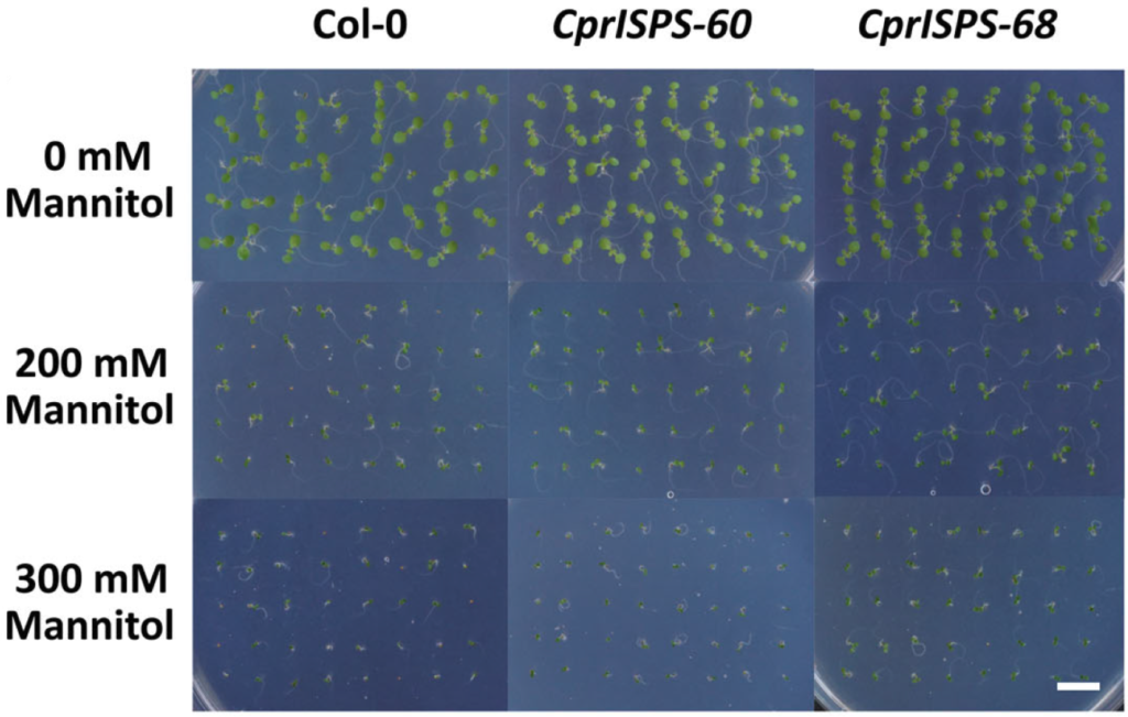 Gli esperimenti sono stati condotti sottoponendo le piante a stress idrico simulato utilizzando il mannitolo, una sostanza che riduce la disponibilità di acqua nel terreno. Di 80 linee di piante modificate (anche dette transgeniche) prodotte, due sono state selezionate come esprimenti CprISPS, e sono state chiamate CprISPS-60 e CprISPS-68. Queste due linee vegetali sono state fatte crescere assieme a una linea chiamata Col-0, ossia la forma originale, senza modifiche, di A. thaliana, per comparare le differenze fra le forme modificate e quella nativa.