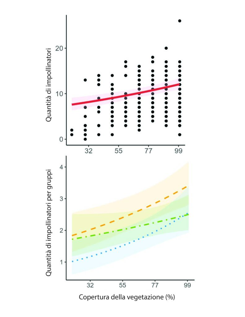 La copertura del suolo offerta dalla vegetazione e la diversità di fiori e piante sono emersi come fattori chiave per promuovere l’abbondanza e la diversità degli impollinatori, come si vede anche dai dati pubblicati dagli stessi ricercatori.